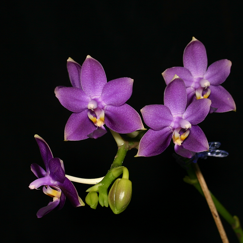 The Anthocyanin pigments in Phalaenopsis are not capable of producing true blue colors.  After extensive studies using controlled Pantone color charts, we have found that all pure coeruleas are no bluer than others and the color hue should be referred to as Violet.  (Not Blue, Not Purple.)
